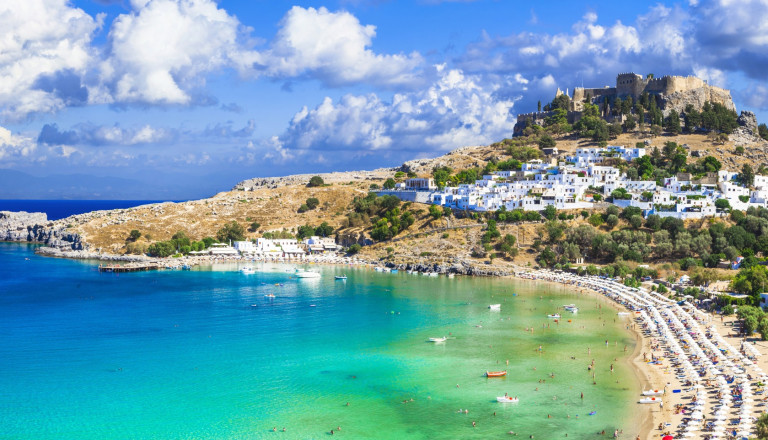 Baden, Wassersport und Tauchen sind beliebte Urlaubsaktivitäten auf Rhodos. Außerdem lockt die Insel mit den für Griechenland typischen strahlend weißen Häusern, alten Kirchen und Klöstern und allerlei weiteren Sehenswürdigkeiten, die von der langen und ereignisreichen Geschichte von Rhodos zeugen. Unbedingt anschauen sollten Sie die Altstadt von Rhodos-Stadt sowie Lindos mit seiner Akropolis – beides sind UNESCO-Welterbestätten.