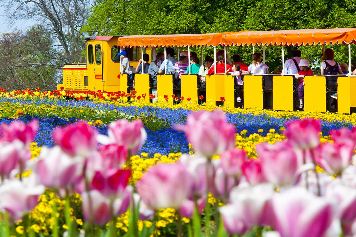 Die Niederlande ohne Tulpen? Undenkbar! Zur Tulpenblüte, etwa Mitte April, ist der zur Gemeinde Lisse in Südholland gehörende Keukenhof das Ausflugsziel schlechthin. Dann verwandelt sich die 32 Hektar große Gartenanlage, die von vielen Spazierwegen durchzogen ist, in ein buntes Farbenmeer, das einen atemberaubenden Anblick abgibt. Neben Millionen Tulpen, weiteren Blumen und an die hundert verschiedenen Baumarten erwarten die Besucher hier auch viele kunstvolle Skulpturen und Pavillons mit Blumenshows und Ausstellungen. Für strahlende Kinderaugen sorgen ein Spielplatz, ein Streichelzoo und weitere Attraktionen.