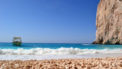 Der von 200 Meter hohen, steilen Felswänden umgebene Shipwreck Beach ist das Wahrzeichen von Zakynthos und gleichzeitig die berühmteste Sehenswürdigkeit der Insel. Der kleine Strand, an den türkisfarbene und blaue Wellen schwappen, trägt seinen Namen wegen des Wracks eines Schmugglerschiffs, das hier auf dem Sand liegt. Das Schiff strandete 1980 mit einer illegalen Ladung Zigaretten an Bord in der Bucht, als es von der Küstenwache in einer stürmischen Nacht verfolgt wurde und einen Motorschaden erlitt. Die Schmuggler konnten sich rechtzeitig in Sicherheit bringen und fliehen.Auf einer der steilen Klippen am Shipwreck Beach gibt es eine Aussichtsplattform, von der sich ein atemberaubender Ausblick auf diese ganz besondere Attraktion bietet, die übrigens auch unzählige Postkarten ziert. Der Strand selbst kann nur vom Meer aus erreicht werden: Während der Urlaubssaison werden täglich zahlreiche Schiffs- und Bootstouren in die Schmugglerbucht angeboten. Diese lohnen sich auf jeden Fall, um sich den zauberhaften Strand und das Wrack aus der Nähe anzuschauen. Baden kann man dann auch am Strand, allerdings strömen während der Hochsaison viele Touristen hierher, sodass es meist ziemlich turbulent zugeht. Der Shipwreck Beach ist eben eine eindrucksvolle Sehenswürdigkeit und ein bezauberndes Fleckchen Erde, aber nicht unbedingt der ruhigste Badestrand.